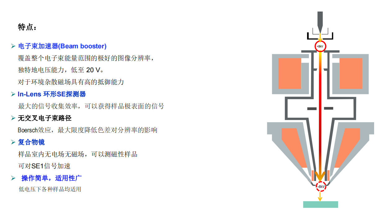 高分辨率:0.9nm (@15kV),1.7nm(@1kV)